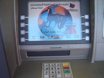 日本で普通に銀行や駅または空港などに設置されているATM。海外でもATMはよく目にします。ここでクレジットカードのキャッシングができるんです。もちろん出てくるお金はインドルピーやモロッコディラハムの現地通貨です。